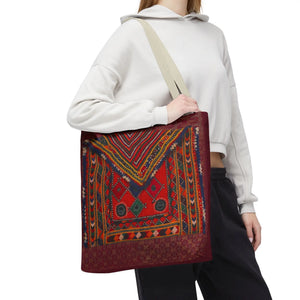 Carry the rugged beauty of the desert with the Bohemian Vintage Kilim Tote Bag. Featuring a high-contrast, intricate illustration of traditional Kilim weaving, this bag is a tribute to the hand-loomed "story-carpets" of tribal heritage. It is a bold fusion of rustic folk art and modern durability, designed for those who appreciate deep textures and soulful, geometric storytelling.