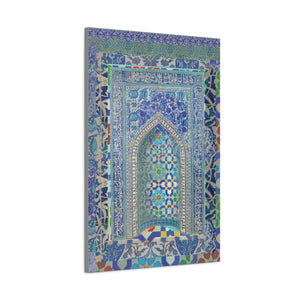 This isn't just a print; it is a structural masterpiece for your home. The 1.25" stretched profile provides a substantial, gallery-wrapped presence that gives the mosaic arch a realistic, three-dimensional feel. Whether you are anchoring a tranquil prayer room, adding a sophisticated focal point to an entryway, or curating a "luxury lifestyle" gallery wall, the deep cobalts and crisp white accents offer a timeless aesthetic that commands attention.