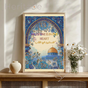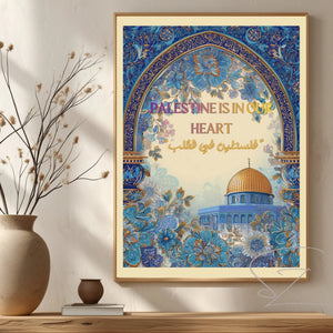 "Palestine Lives in Our Hearts" is more than a sentiment—it is a testament to the unbreakable bond between a people and their land. This art print serves as a powerful visual reminder that heritage, culture, and memory are carried within us, standing strong regardless of distance or time. It is a piece designed for homes that value storytelling, resilience, and the quiet strength of identity.