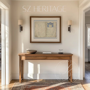 This historic manuscript artwork brings the elegance of 15th-century Islamic book arts into contemporary interiors.