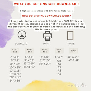 High-resolution printable files suitable for various sizes wall art.