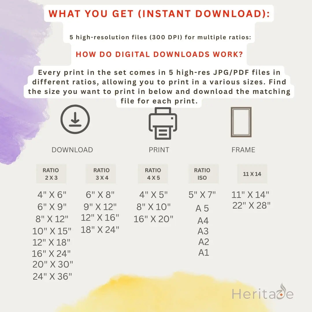 High-resolution printable files suitable for various sizes wall art.